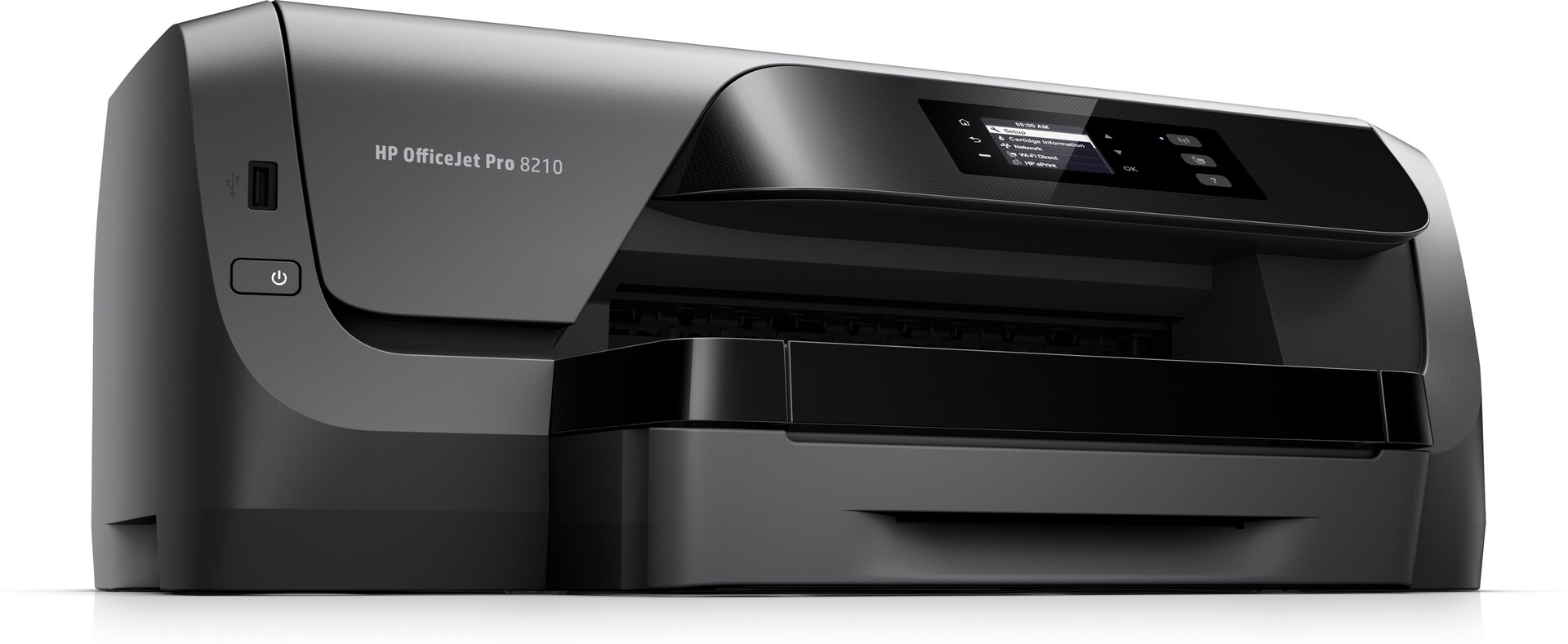 HP OfficeJet Pro 8210. Resolução Máxima: 1200 x 1200 DPI, Volume mensal de páginas recomendado: 30000 páginas por mês, Idiomas de série de impressora: PCL 6, PCL XL, PDF 1.3. Velocidade de impressão (preto, qualidade normal, A4/US Letter): 22 ppm, Velocidade de impressão (preto, qualidade de rascunho, A4/US Letter): 34 ppm, Velocidade de impressão (cores, qualidade de rascunho, A4/US Letter): 34 ppm. Capacidade standard de entrada (folhas): 250 folhas. Capacidade standard de saída (folhas): 150 folhas. Dimensão máxima de papel ISO A-series: A4, Standard tray media types: Papel em branco, Papel espesso, Tamanhos ISO série A (A0?A9): A4, A5, A6