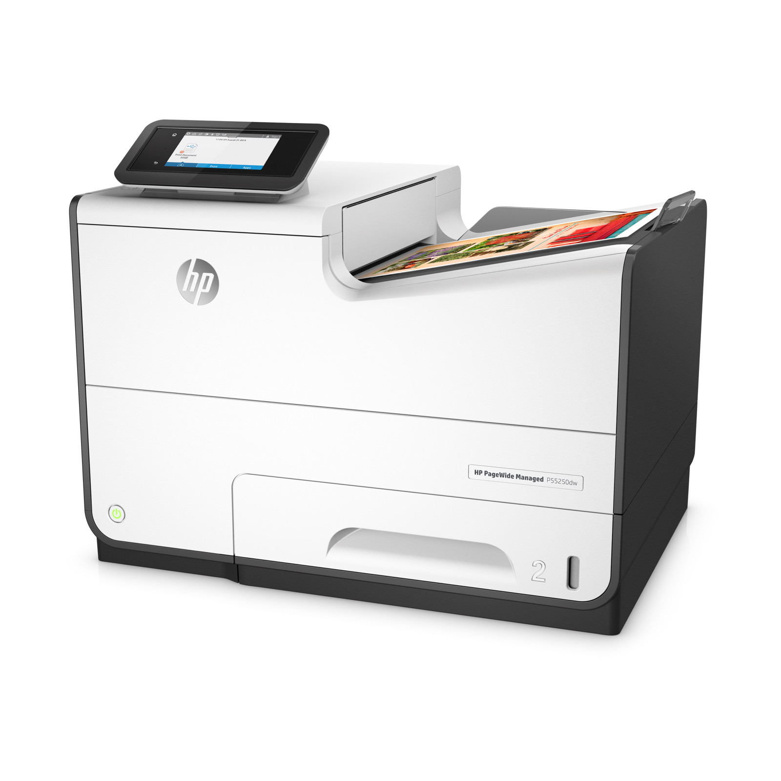HP PageWide Managed P55250dw. Resolução Máxima: 2400 x 1200 DPI, Volume mensal de páginas recomendado: 80000 páginas por mês, Idiomas de série de impressora: PCL 6, PostScript 3. Velocidade de impressão (preto, qualidade normal, A4/US Letter): 50 ppm, Velocidade de impressão (cores, qualidade normal, A4/US Letter): 50 ppm, Primeira página a sair (preto, A4): 6 s. Capacidade standard de entrada (folhas): 500 folhas, Multi-Purpose Tray capacity: 50 folhas. Capacidade standard de saída (folhas): 300 folhas, Capacidade máxima de saída (folhas): 300 folhas. Dimensão máxima de papel ISO A-series: A4, Standard tray media types: Papel de impressão branco, Cartolina, Envelopes, Papel espesso, Etiquetas, papel Matte, Papel de fot, Tamanhos ISO série A (A0?A9): A4, A5, A6